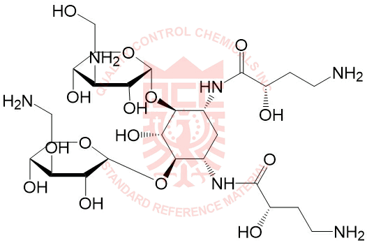 Synonyms: (S)-4-amino-N-((1R,2S,3S,4R,5S)-5-amino-4-(((2R,3R,4S,5S,6R)-6-(((S)-4-amino-2-hydroxybutanamido)methyl)-3,4,5-trihydroxytetrahydro-2H-pyran-2-yl)oxy)-2-(((2S,3R,4S,5S,6R)-4-amino-3,5-dihydroxy-6-(hydroxymethyl)tetrahydro-2H-pyran-2-yl)oxy)-3-hydroxycyclohexyl)-2-hydroxybutanamide
