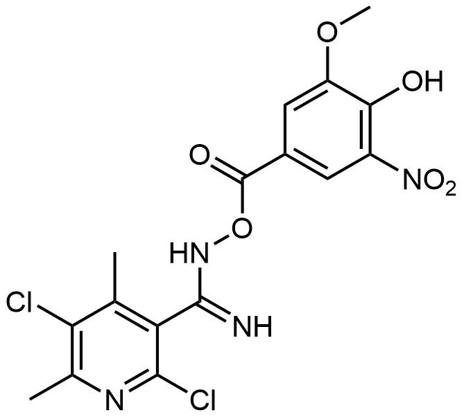 Synonyms: 2,5-dichloro-N-((4-hydroxy-3-methoxy-5-nitrobenzoyl)oxy)-4,6-dimethylnicotinimidamide