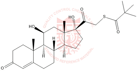 Synonyms: S-(2-((8S,9S,10R,11S,13S,14S,17R)-11,17-dihydroxy-10,13-dimethyl-3-oxo-2,3,6,7,8,9,10,11,12,13,14,15,16,17-tetradecahydro-1H-cyclopenta[a]phenanthren-17-yl)-2-oxoethyl) 2,2-dimethylpropanethioate