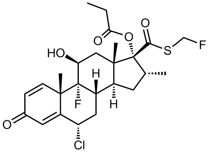 Synonyms: (6S,8S,9R,10S,11S,13S,14S,16R,17R)-6-chloro-9-fluoro-17-(((fluoromethyl)thio)carbonyl)-11-hydroxy-10,13,16-trimethyl-3-oxo-6,7,8,9,10,11,12,13,14,15,16,17-dodecahydro-3H-cyclopenta[a]phenanthren-17-yl propionate