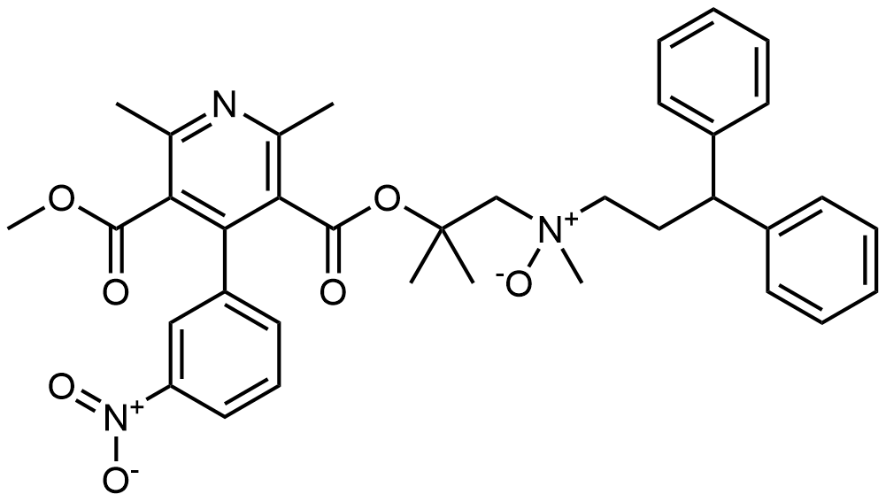 Synonyms: N-(3,3-diphenylpropyl)-2-((5-(methoxycarbonyl)-2,6-dimethyl-4-(3-nitrophenyl)nicotinoyl)oxy)-N,2-dimethylpropan-1-amine oxide