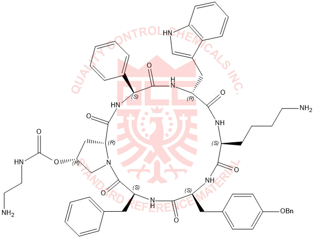 Synonyms: (3S,6R,9S,12S,15S,19R,20aR)-6-((1H-indol-3-yl)methyl)-9-(4-aminobutyl)-15-benzyl-12-(4-(benzyloxy)benzyl)-1,4,7,10,13,16-hexaoxo-3-phenylicosahydropyrrolo[1,2-a][1,4,7,10,13,16]hexaazacyclooctadecin-19-yl (2-aminoethyl)carbamate