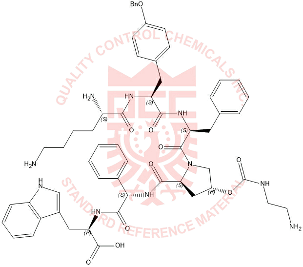 Synonyms: (R)-2-((S)-2-((2S,4R)-4-(((2-aminoethyl)carbamoyl)oxy)-1-((S)-2-((S)-3-(4-(benzyloxy)phenyl)-2-((S)-2,6-diaminohexanamido)propanamido)-3-phenylpropanoyl)pyrrolidine-2-carboxamido)-2-phenylacetamido)-3-(1H-indol-3-yl)propanoic acid