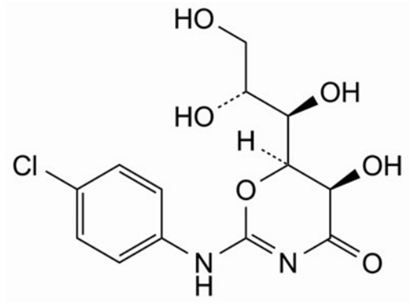Synonyms: (5R,6S)-2-((4-chlorophenyl)amino)-5-hydroxy-6-((1R,2R)-1,2,3-trihydroxypropyl)-5,6-dihydro-4H-1,3-oxazin-4-one