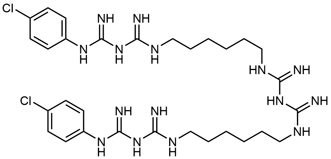 CAS No.: 56-95-1;18472-51-0(Digluconate);206986-79-0(diacetate hydrate);3697-42-5(2HCl salt);55-56-1 (free ba