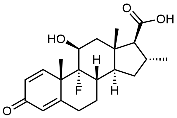 Synonyms: (8S,9R,10S,11S,13S,14S,16R,17S)-9-fluoro-11-hydroxy-10,13,16-trimethyl-3-oxo-6,7,8,9,10,11,12,13,14,15,16,17-dodecahydro-3H-cyclopenta[a]phenanthrene-17-carboxylic acid