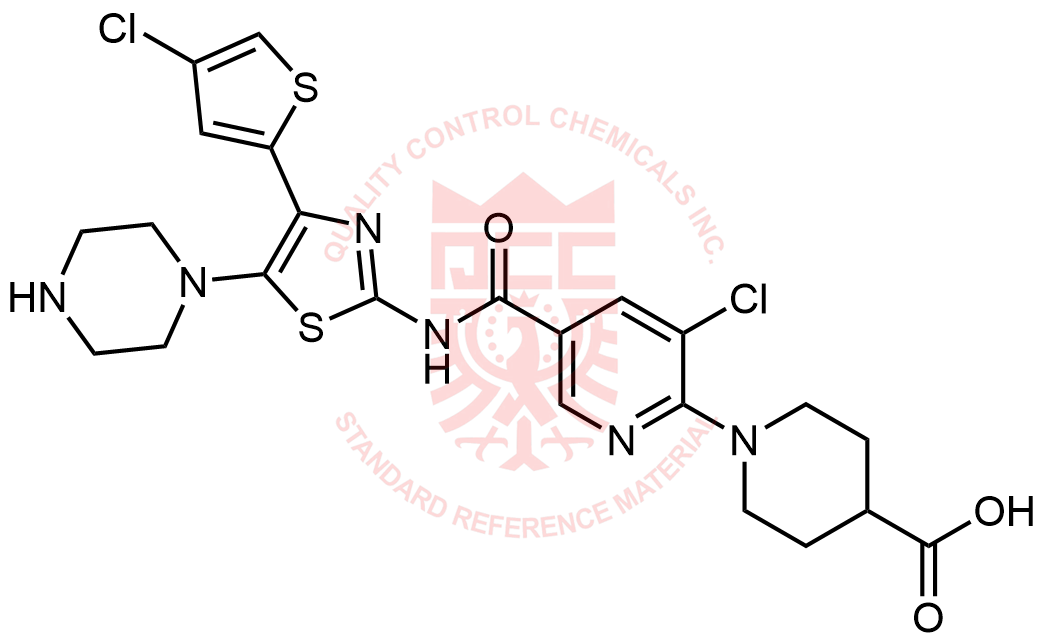 Synonyms: 1-(3-chloro-5-((4-(4-chlorothiophen-2-yl)-5-(piperazin-1-yl)thiazol-2-yl)carbamoyl)pyridin-2-yl)piperidine-4-carboxylic acid