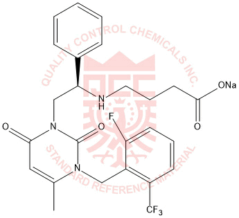 Synonyms: sodium (R)-4-((2-(3-(2-fluoro-6-(trifluoromethyl)benzyl)-4-methyl-2,6-dioxo-2,3-dihydropyrimidin-1(6H)-yl)-1-phenylethyl)amino)butanoate