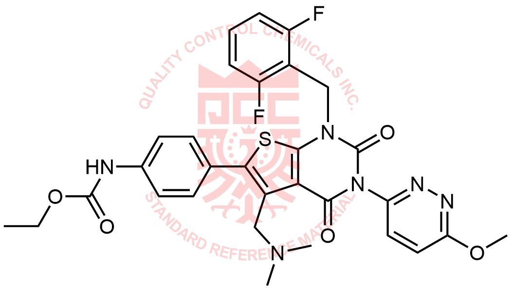 Synonyms: ethyl (4-(1-(2,6-difluorobenzyl)-5-((dimethylamino)methyl)-3-(6-methoxypyridazin-3-yl)-2,4-dioxo-1,2,3,4-tetrahydrothieno[2,3-d]pyrimidin-6-yl)phenyl)carbamate