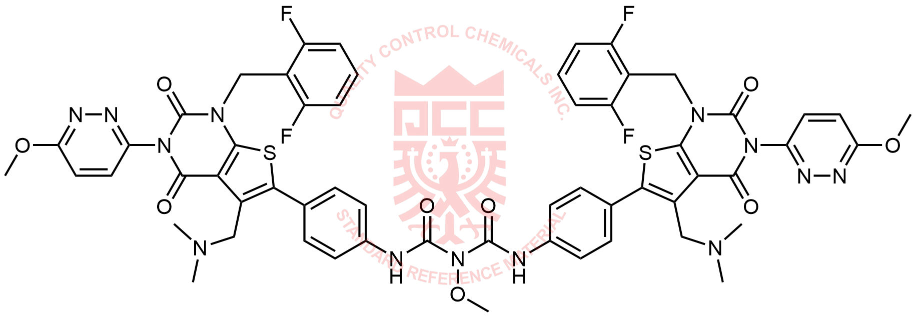 Synonyms: 3-(4-(1-(2,6-difluorobenzyl)-5-((dimethylamino)methyl)-3-(6-methoxypyridazin-3-yl)-2,4-dioxo-1,2,3,4-tetrahydrothieno[2,3-d]pyrimidin-6-yl)phenyl)-1-((4-(1-(2,6-difluorobenzyl)-5-((dimethylamino)methyl)-3-(6-methoxypyridazin-3-yl)-2,4-dioxo-1,2,3,4-tetrahydrothieno[2,3-d]pyrimidin-6-yl)phenyl)carbamoyl)-1-methoxyurea