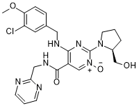 Synonyms: (S)-4-((3-chloro-4-methoxybenzyl)amino)-2-(2-(hydroxymethyl)pyrrolidin-1-yl)-5-((pyrimidin-2-ylmethyl)carbamoyl)pyrimidine 1-oxide