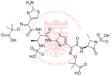 Synonyms: 2-(((Z)-(1-(2-((2S,3S)-2-((Z)-2-(2-aminothiazol-4-yl)-2-(((2-carboxypropan-2-yl)oxy)imino)acetamido)-3-(sulfoamino)butanamido)thiazol-4-yl)-2-(((2S,3S)-2-methyl-4-oxo-1-sulfoazetidin-3-yl)amino)-2-oxoethylidene)amino)oxy)-2-methylpropanoic acid