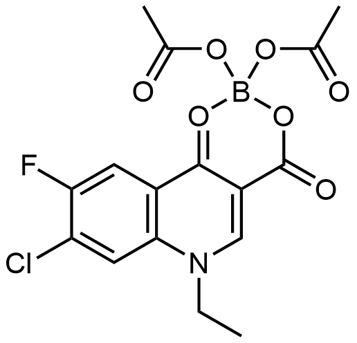 Synonyms: 2,2-diacetoxy-8-chloro-6-ethyl-9-fluoro-4-oxo-4,6-dihydro-2H-[1,3,2]dioxaborinino[5,4-c]quinolin-1-ium-2-uide