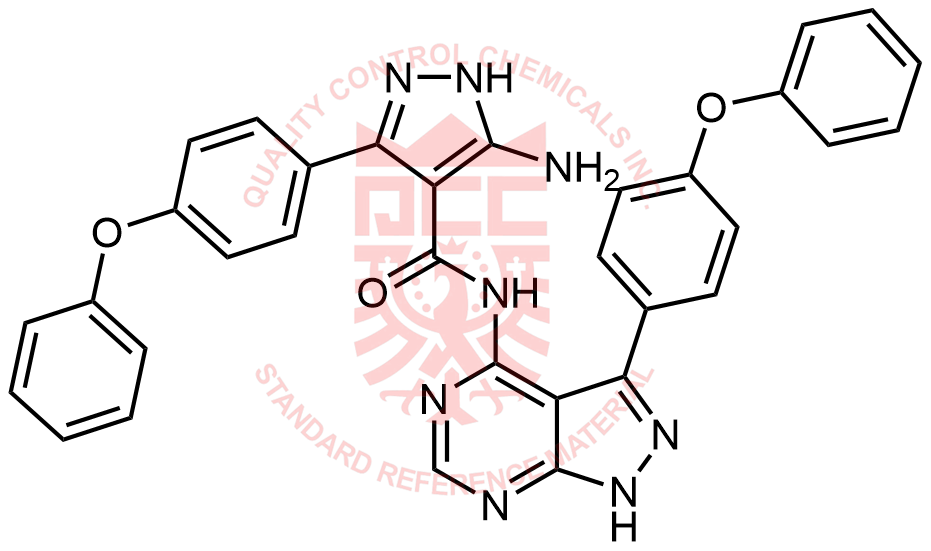 Synonyms: 5-amino-3-(4-phenoxyphenyl)-N-(3-(4-phenoxyphenyl)-1H-pyrazolo[3,4-d]pyrimidin-4-yl)-1H-pyrazole-4-carboxamide