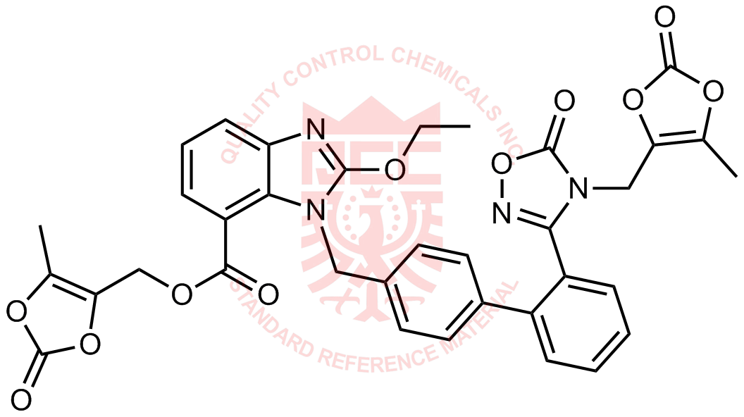 Synonyms: (5-methyl-2-oxo-1,3-dioxol-4-yl)methyl 2-ethoxy-1-((2'-(4-((5-methyl-2-oxo-1,3-dioxol-4-yl)methyl)-5-oxo-4,5-dihydro-1,2,4-oxadiazol-3-yl)-[1,1'-biphenyl]-4-yl)methyl)-1H-benzo[d]imidazole-7-carboxylate