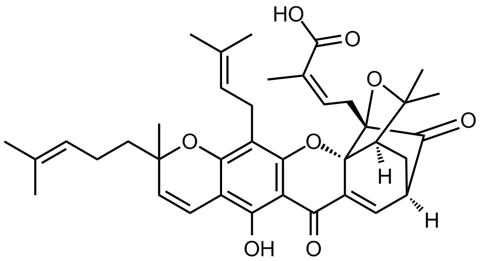 Synonyms: (Z)-4-((1S,3aR,5S,11R,14aS)-8-hydroxy-2,2,11-trimethyl-13-(3-methylbut-2-en-1-yl)-11-(4-methylpent-3-en-1-yl)-4,7-dioxo-2,3a,4,5,7,11-hexahydro-1H-1,5-methanofuro[3,2-g]pyrano[3,2-b]xanthen-3a-yl)-2-methylbut-2-enoic acid