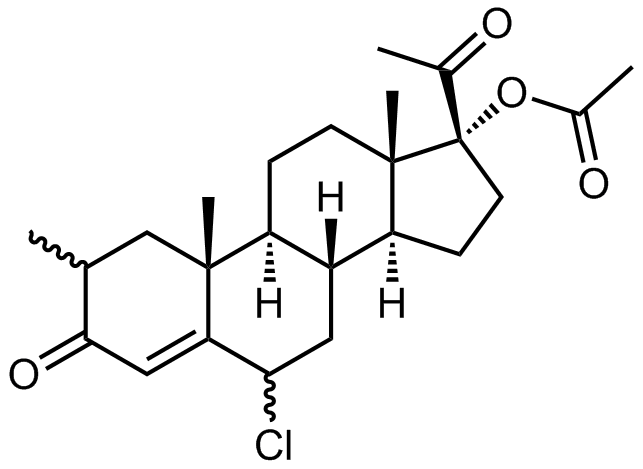 Synonyms: (8R,9S,10R,13S,14S,17R)-17-acetyl-6-chloro-2,10,13-trimethyl-3-oxo-2,3,6,7,8,9,10,11,12,13,14,15,16,17-tetradecahydro-1H-cyclopenta[a]phenanthren-17-yl acetate