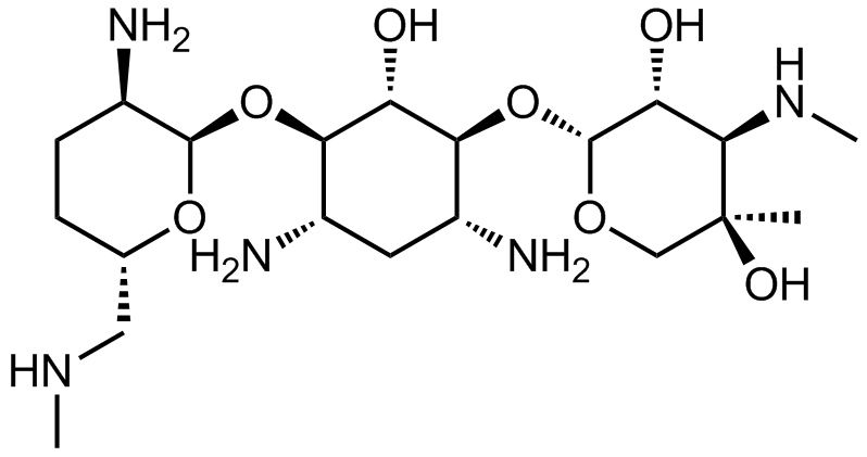 Synonyms: (2R,3R,4R,5R)-2-(((1S,2S,3R,4S,6R)-4,6-diamino-3-(((2R,3R,6S)-3-amino-6-((methylamino)methyl)tetrahydro-2H-pyran-2-yl)oxy)-2-hydroxycyclohexyl)oxy)-5-methyl-4-(methylamino)tetrahydro-2H-pyran-3,5-diol