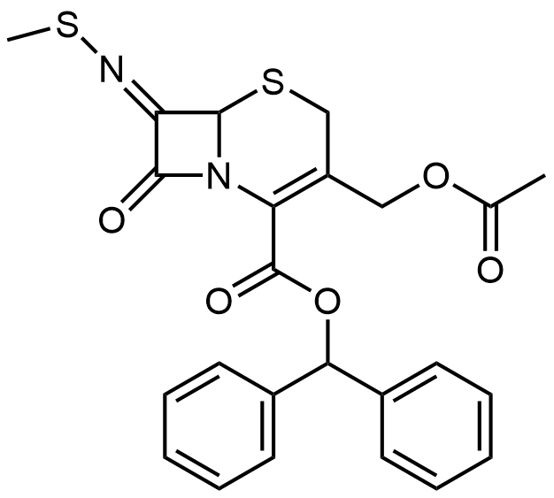 Synonyms: benzhydryl (6R,7S)-7-(2-((cyanomethyl)thio)acetamido)-7-methoxy-3-(((1-methyl-1H-tetrazol-5-yl)thio)methyl)-8-oxo-5-thia-1-azabicyclo[4.2.0]oct-3-ene-2-carboxylate