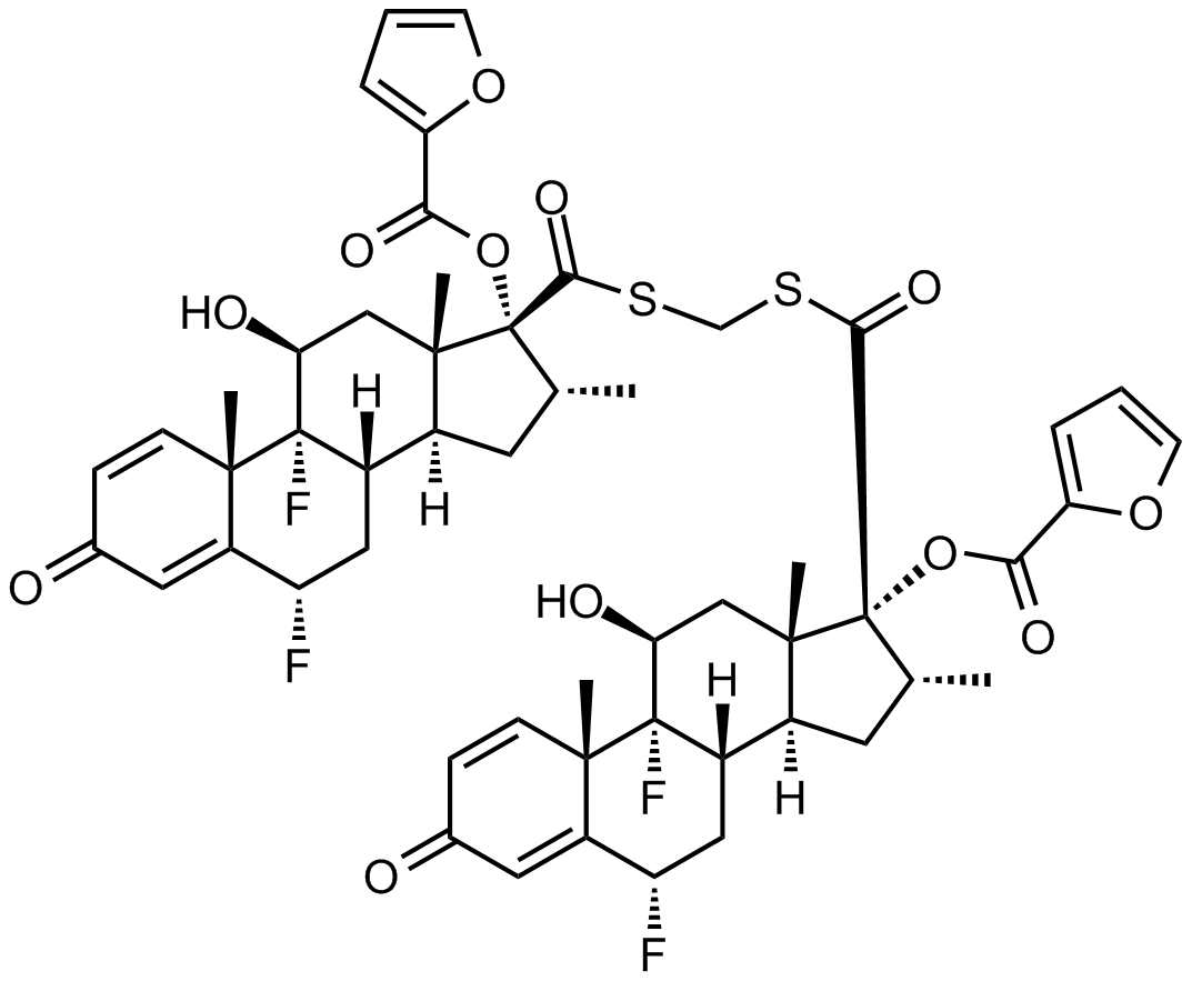 Synonyms: (6S,6'S,8S,8'S,9R,9'R,10S,10'S,11S,11'S,13S,13'S,14S,14'S,16R,16'R,17R,17'R)-((methylenebis(sulfanediyl))bis(carbonyl))bis(6,9-difluoro-11-hydroxy-10,13,16-trimethyl-3-oxo-6,7,8,9,10,11,12,13,14,15,16,17-dodecahydro-3H-cyclopenta[a]phenanthrene-17,17-diyl) bis(furan-2-carboxylate)