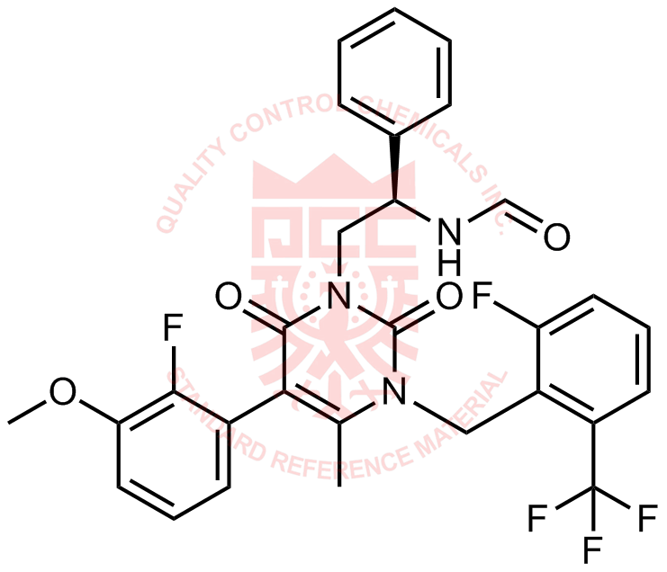 Synonyms: (R)-N-(2-(5-(2-fluoro-3-methoxyphenyl)-3-(2-fluoro-6-(trifluoromethyl)benzyl)-4-methyl-2,6-dioxo-2,3-dihydropyrimidin-1(6H)-yl)-1-phenylethyl)formamide