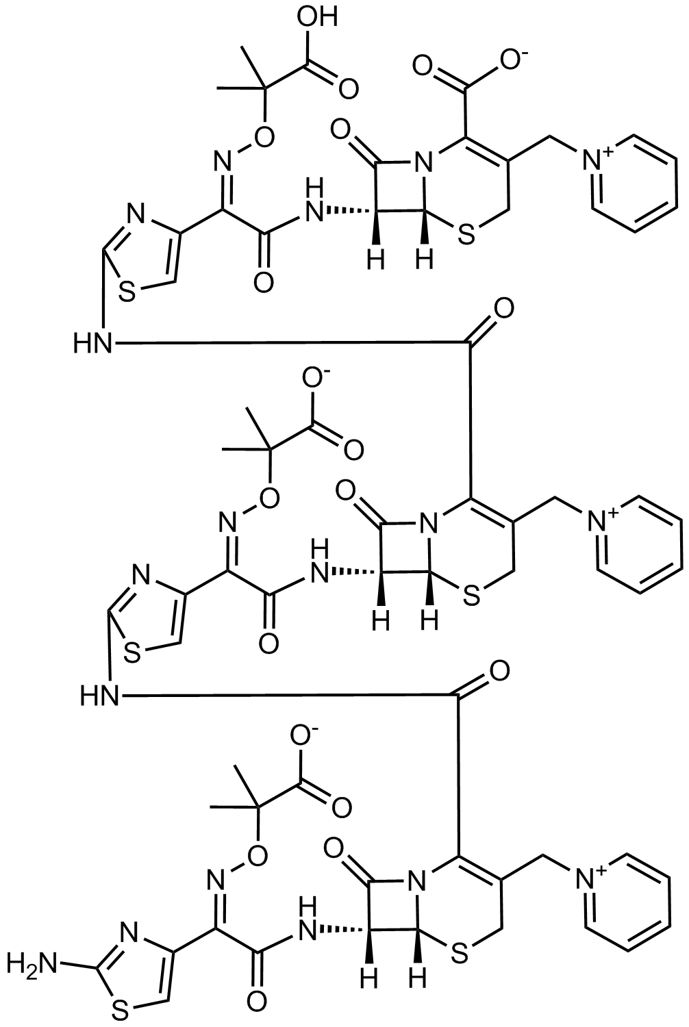 Synonyms: (6R,7R)-7-((Z)-2-(2-((6R,7R)-7-((Z)-2-(2-((6R,7R)-7-((Z)-2-(2-aminothiazol-4-yl)-2-(((2-carboxylatopropan-2-yl)oxy)imino)acetamido)-8-oxo-3-(pyridin-1-ium-1-ylmethyl)-5-thia-1-azabicyclo[4.2.0]oct-2-ene-2-carboxamido)thiazol-4-yl)-2-(((2-carboxylatopropan-2-yl)oxy)imino)acetamido)-8-oxo-3-(pyridin-1-ium-1-ylmethyl)-5-thia-1-azabicyclo[4.2.0]oct-2-ene-2-carboxamido)thiazol-4-yl)-2-(((2-carboxypropan-2-yl)oxy)imino)acetamido)-8-oxo-3-(pyridin-1-ium-1-ylmethyl)-5-thia-1-azabicyclo[4.2.0]oct-2-ene-2-carboxylate