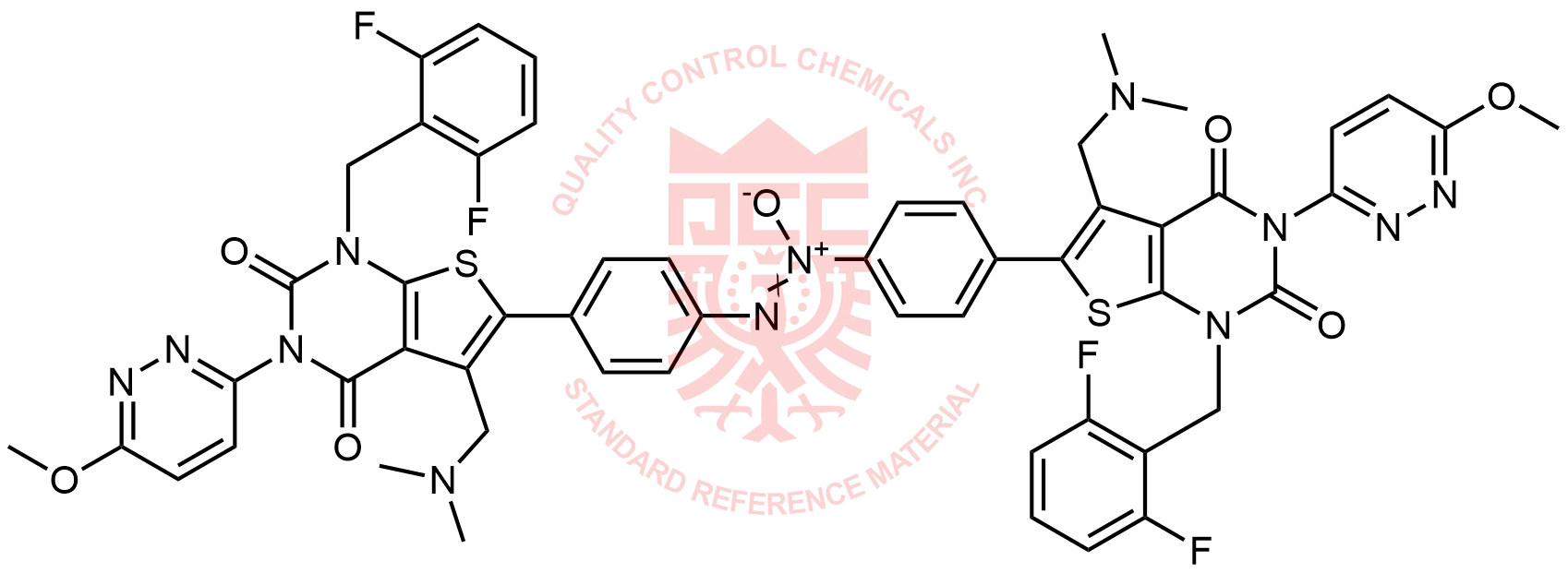 Synonyms: 1,2-bis(4-(1-(2,6-difluorobenzyl)-5-((dimethylamino)methyl)-3-(6-methoxypyridazin-3-yl)-2,4-dioxo-1,2,3,4-tetrahydrothieno[2,3-d]pyrimidin-6-yl)phenyl)diazene oxide