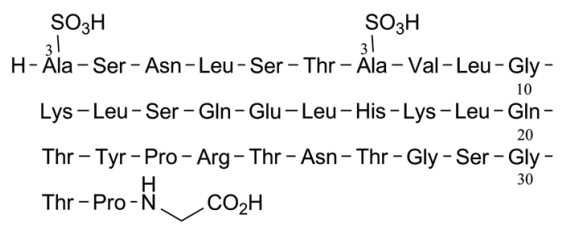 Synonyms: Calcitonin (Salmon) EP Impurity G;[1,7-bis(3-sulfo-L-alanine)]calcitoninylglycine (salmon)