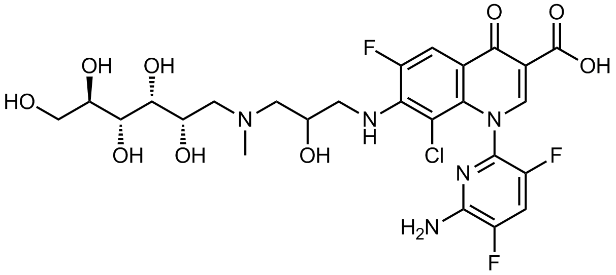 Synonyms: 1-(6-amino-3,5-difluoropyridin-2-yl)-8-chloro-6-fluoro-7-((2-hydroxy-3-(methyl((2S,3R,4R,5R)-2,3,4,5,6-pentahydroxyhexyl)amino)propyl)amino)-4-oxo-1,4-dihydroquinoline-3-carboxylic acid