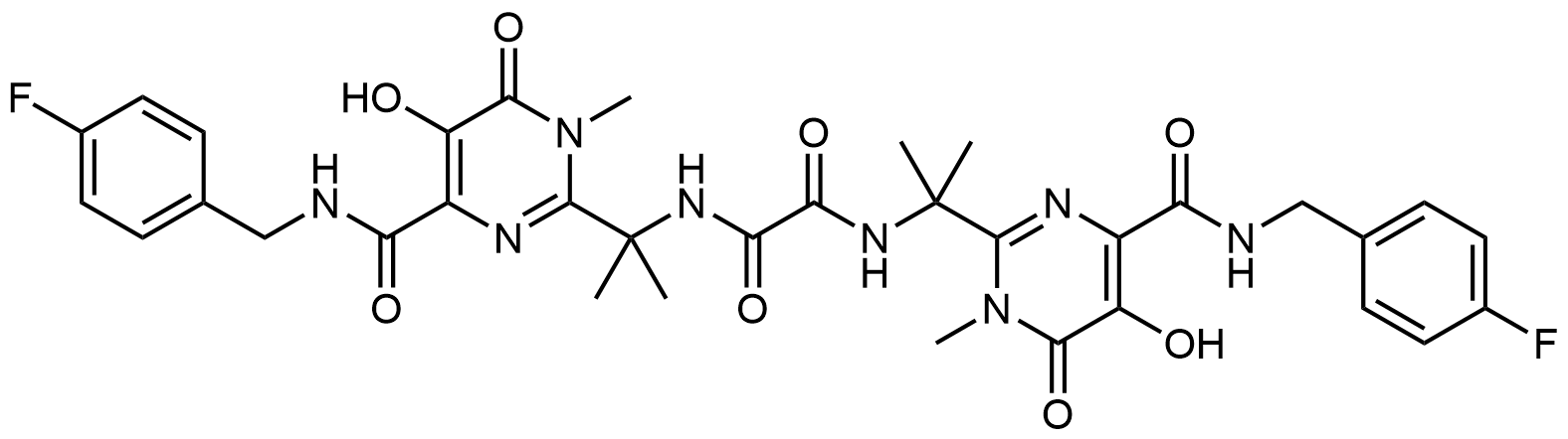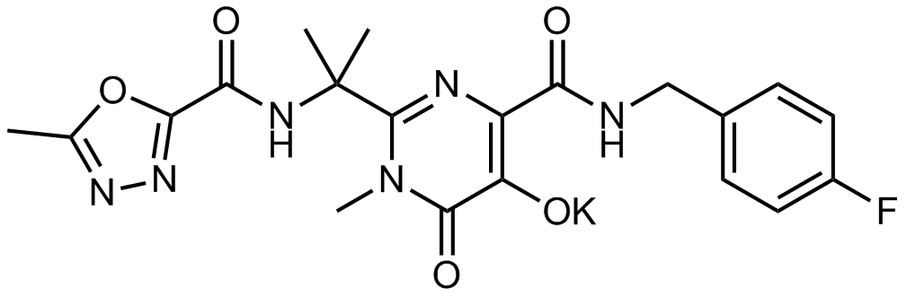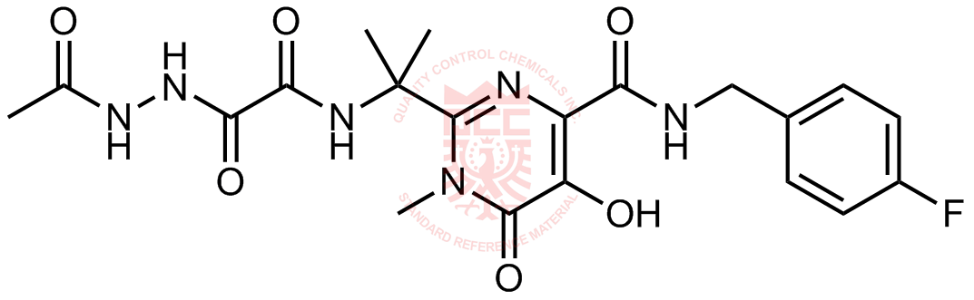 Synonyms: (Z)-ethyl N'-(2-((2-(4-((4-fluorobenzyl)carbamoyl)-5-hydroxy-1-methyl-6-oxo-1,6-dihydropyrimidin-2-yl)propan-2-yl)amino)-2-oxoacetyl)acetohydrazonate
