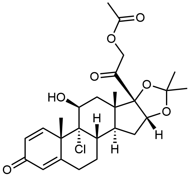 Synonyms: 2-((6aS,6bR,7S,8aS,8bS,11aR,12aS,12bS)-6b-chloro-7-hydroxy-6a,8a,10,10-tetramethyl-4-oxo-1,2,4,6a,6b,7,8,8a,11a,12,12a,12b-dodecahydro-8bH-naphtho[2',1':4,5]indeno[1,2-d][1,3]dioxol-8b-yl)-2-oxoethyl acetate