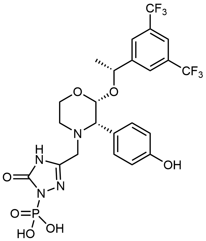 Synonyms: (3-(((2R,3S)-2-((R)-1-(3,5-bis(trifluoromethyl)phenyl)ethoxy)-3-(4-hydroxyphenyl)morpholino)methyl)-5-oxo-4,5-dihydro-1H-1,2,4-triazol-1-yl)phosphonic acid