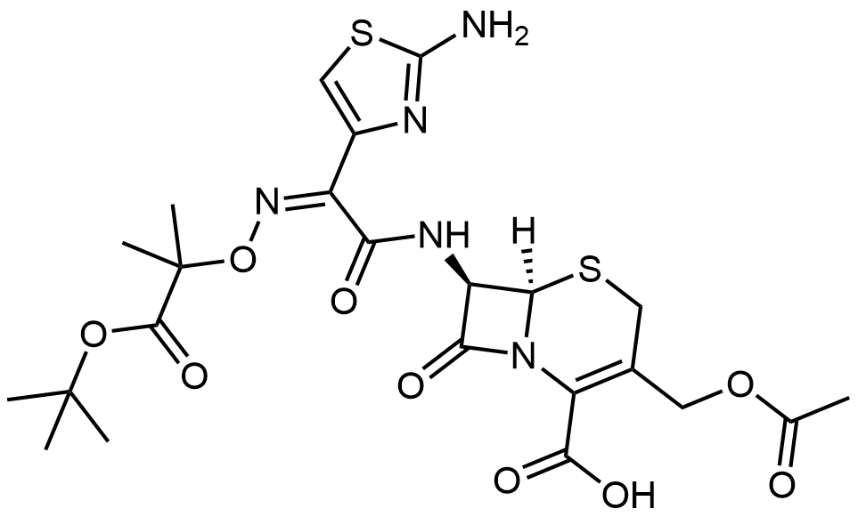 Synonyms: (6R,7R)-3-(acetoxymethyl)-7-((Z)-2-(2-aminothiazol-4-yl)-2-(((1-(tert-butoxy)-2-methyl-1-oxopropan-2-yl)oxy)imino)acetamido)-8-oxo-5-thia-1-azabicyclo[4.2.0]oct-2-ene-2-carboxylic acid