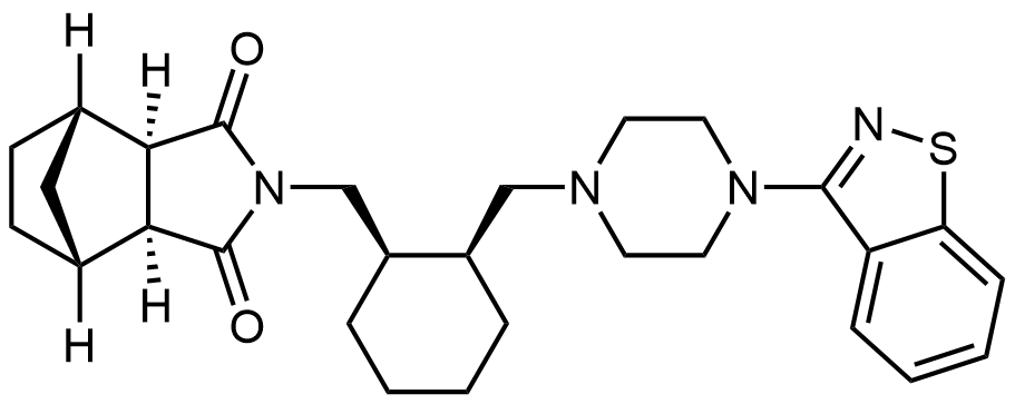 Synonyms: (3aR,4S,7R,7aS)-2-(((1R,2S)-2-((4-(benzo[d]isothiazol-3-yl)piperazin-1-yl)methyl)cyclohexyl)methyl)hexahydro-1H-4,7-methanoisoindole-1,3(2H)-dione