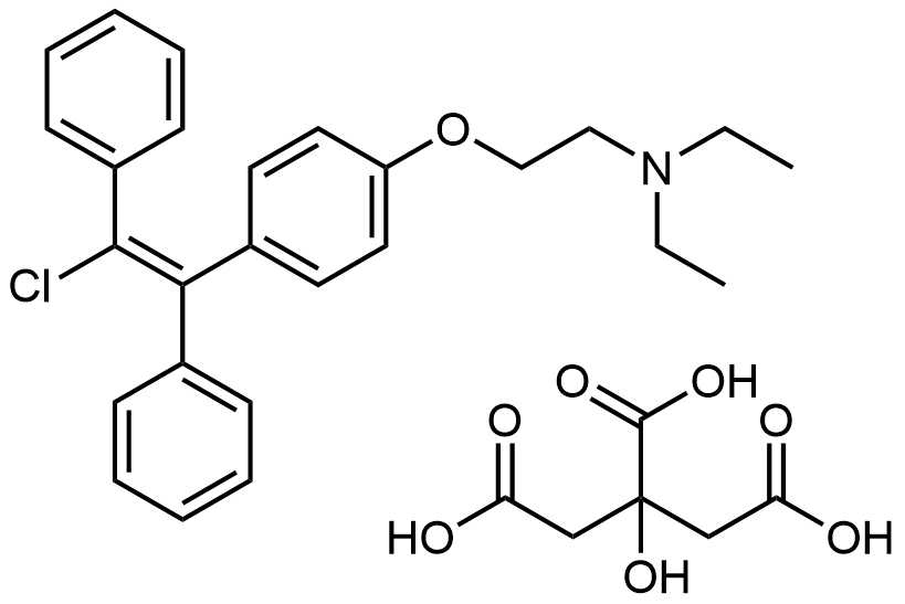 Synonyms: (E)-2-(4-(2-chloro-1,2-diphenylvinyl)phenoxy)-N,N-diethylethan-1-amine 2-hydroxypropane-1,2,3-tricarboxylate