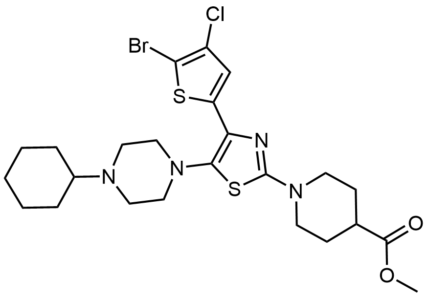 Synonyms: methyl 1-(4-(5-bromo-4-chlorothiophen-2-yl)-5-(4-cyclohexylpiperazin-1-yl)thiazol-2-yl)piperidine-4-carboxylate