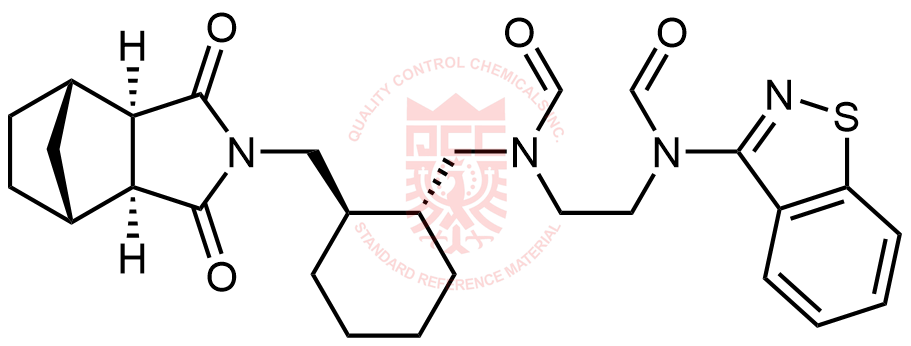 Synonyms: N-(benzo[d]isothiazol-3-yl)-N-(2-(N-(((1R,2R)-2-(((3aR,4S,7R,7aS)-1,3-dioxooctahydro-2H-4,7-methanoisoindol-2-yl)methyl)cyclohexyl)methyl)formamido)ethyl)formamide