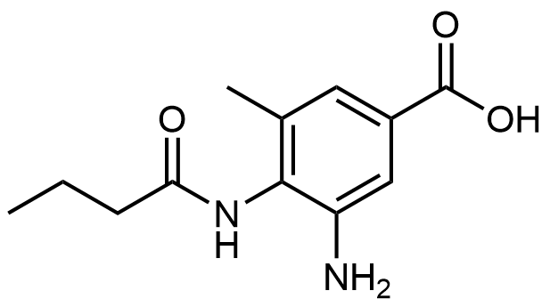 Synonyms: 3-amino-4-butyramido-5-methylbenzoic acid