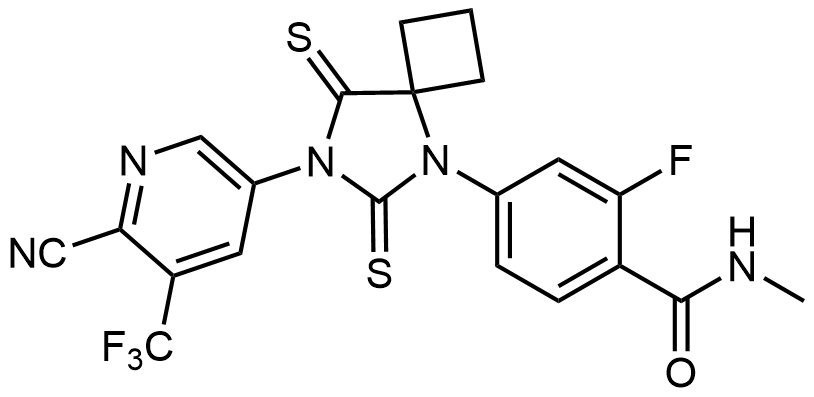 Synonyms: 4-(7-(6-cyano-5-(trifluoromethyl)pyridin-3-yl)-6,8-dithioxo-5,7-diazaspiro[3.4]octan-5-yl)-2-fluoro-N-methylbenzamide