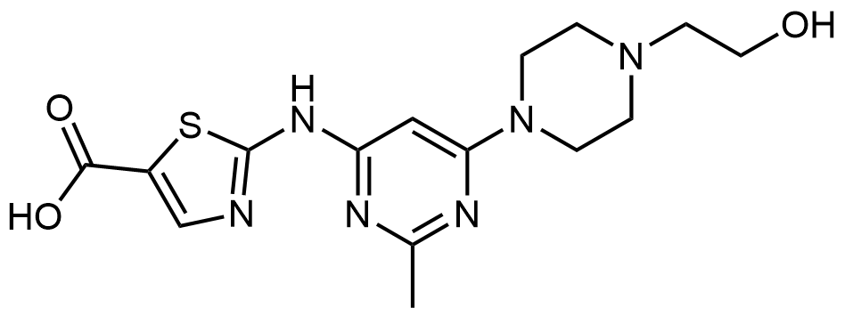 Synonyms: 2-((6-(4-(2-hydroxyethyl)piperazin-1-yl)-2-methylpyrimidin-4-yl)amino)thiazole-5-carboxylic acid