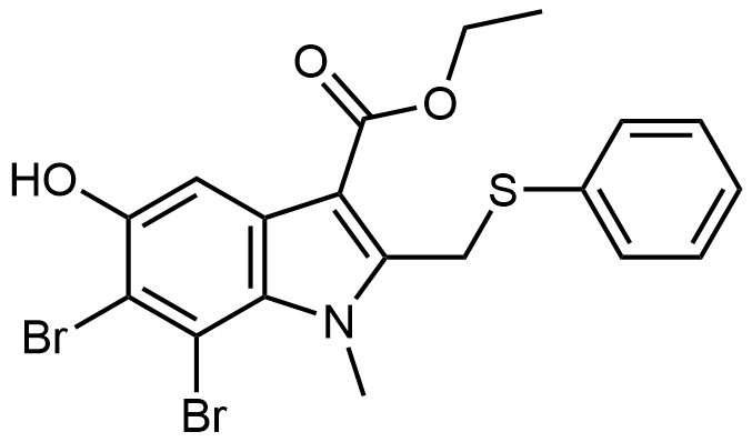 Synonyms: ethyl 6,7-dibromo-5-hydroxy-1-methyl-2-((phenylthio)methyl)-1H-indole-3-carboxylate