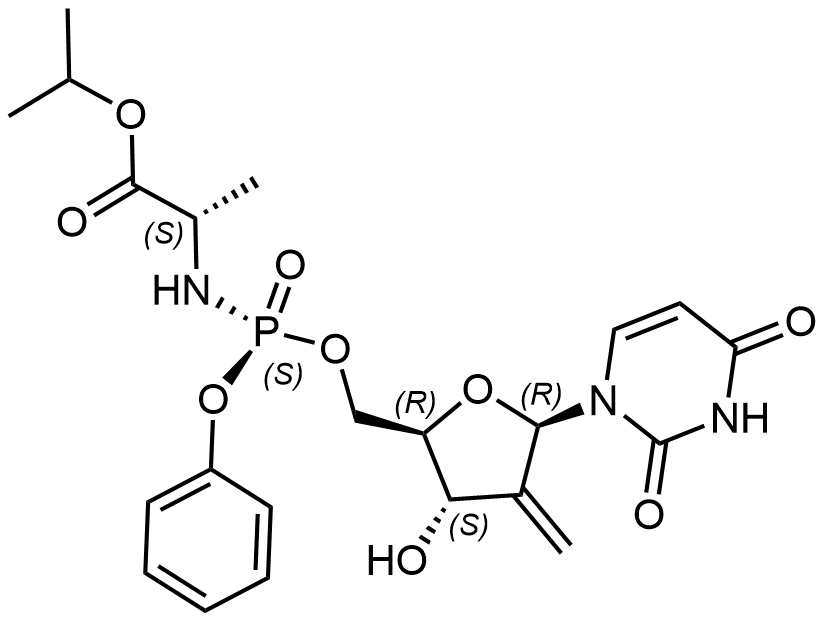 Synonyms: isopropyl ((S)-(((2R,3S,5R)-5-(2,4-dioxo-3,4-dihydropyrimidin-1(2H)-yl)-3-hydroxy-4-methylenetetrahydrofuran-2-yl)methoxy)(phenoxy)phosphoryl)-L-alaninate