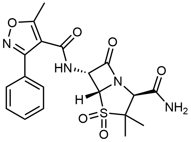 Synonyms: N-((2S,5R,6R)-2-carbamoyl-3,3-dimethyl-4,4-dioxido-7-oxo-4-thia-1-azabicyclo[3.2.0]heptan-6-yl)-5-methyl-3-phenylisoxazole-4-carboxamide