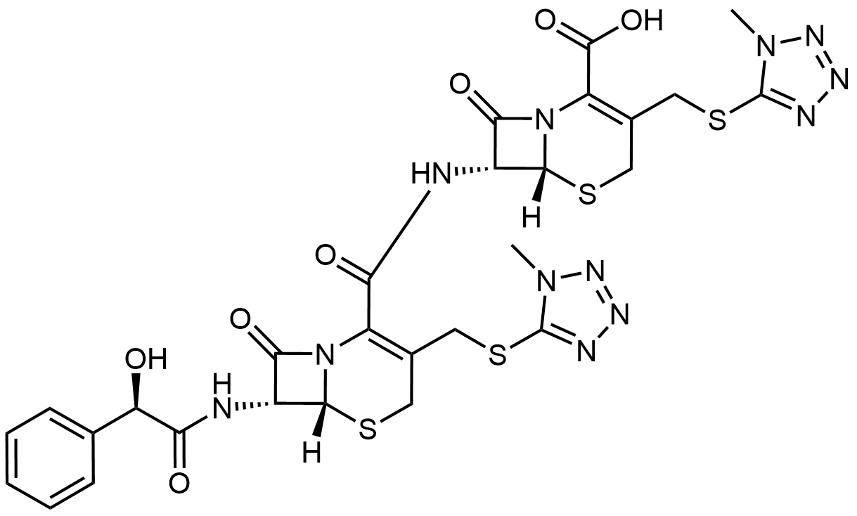Synonyms: (6R,7R)-7-((6R,7R)-7-((R)-2-hydroxy-2-phenylacetamido)-3-(((1-methyl-1H-tetrazol-5-yl)thio)methyl)-8-oxo-5-thia-1-azabicyclo[4.2.0]oct-2-ene-2-carboxamido)-3-(((1-methyl-1H-tetrazol-5-yl)thio)methyl)-8-oxo-5-thia-1-azabicyclo[4.2.0]oct-2-ene-2-carboxylic acid
