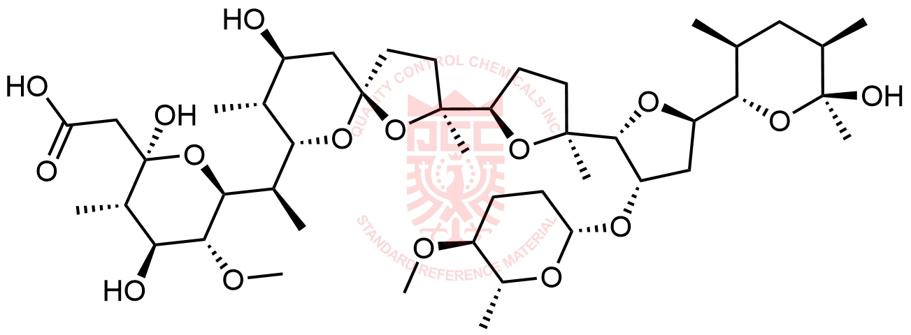 Synonyms: 2-((2R,3S,4S,5R,6S)-2,4-dihydroxy-6-((R)-1-((2S,5R,7S,8R,9S)-9-hydroxy-2-((2S,2'R,3'S,5R,5'R)-5'-((2S,3S,5R,6S)-6-hydroxy-3,5,6-trimethyltetrahydro-2H-pyran-2-yl)-3'-(((2S,5S,6R)-5-methoxy-6-methyltetrahydro-2H-pyran-2-yl)oxy)-2-methyloctahydro-[2,2'-bifuran]-5-yl)-2,8-dimethyl-1,6-dioxaspiro[4.5]decan-7-yl)ethyl)-5-methoxy-3-methyltetrahydro-2H-pyran-2-yl)acetic acid