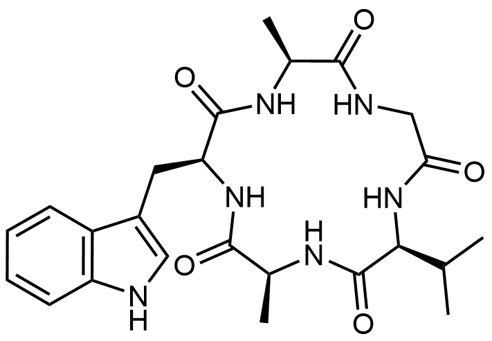 Synonyms: (3S,6S,9S,12S)-6-((1H-indol-3-yl)methyl)-12-isopropyl-3,9-dimethyl-1,4,7,10,13-pentaazacyclopentadecane-2,5,8,11,14-pentaone