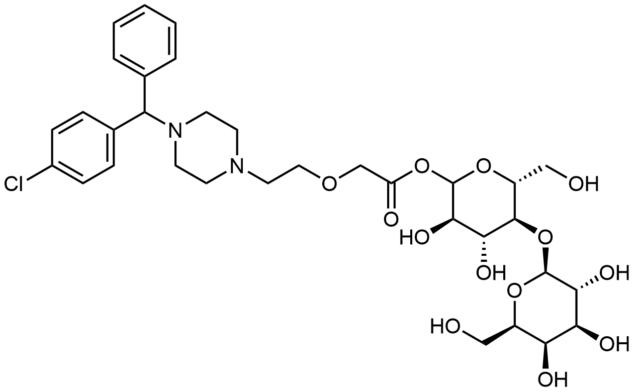 Synonyms: (3R,4R,5S,6R)-3,4-dihydroxy-6-(hydroxymethyl)-5-(((2S,3R,4S,5R,6R)-3,4,5-trihydroxy-6-(hydroxymethyl)tetrahydro-2H-pyran-2-yl)oxy)tetrahydro-2H-pyran-2-yl 2-(2-(4-((4-chlorophenyl)(phenyl)methyl)piperazin-1-yl)ethoxy)acetate