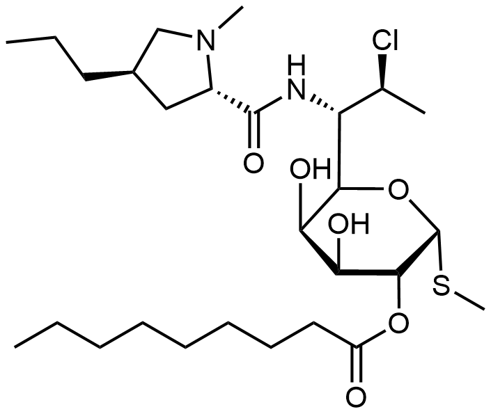 Synonyms: (2R,3R,4S,5R,6R)-6-((1S,2S)-2-chloro-1-((2S,4R)-1-methyl-4-propylpyrrolidine-2-carboxamido)propyl)-4,5-dihydroxy-2-(methylthio)tetrahydro-2H-pyran-3-yl nonanoate