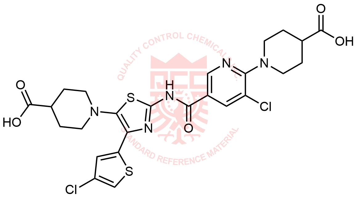 Synonyms: 1-(5-((5-(4-carboxypiperidin-1-yl)-4-(4-chlorothiophen-2-yl)thiazol-2-yl)carbamoyl)-3-chloropyridin-2-yl)piperidine-4-carboxylic acid