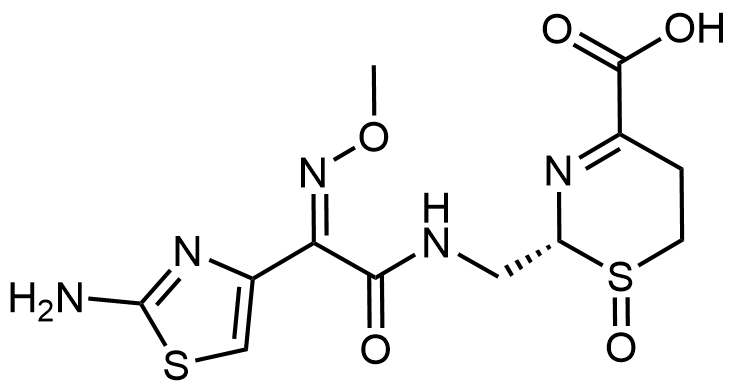 Synonyms: (2R)-2-(((Z)-2-(2-aminothiazol-4-yl)-2-(methoxyimino)acetamido)methyl)-5,6-dihydro-2H-1,3-thiazine-4-carboxylic acid 1-oxide